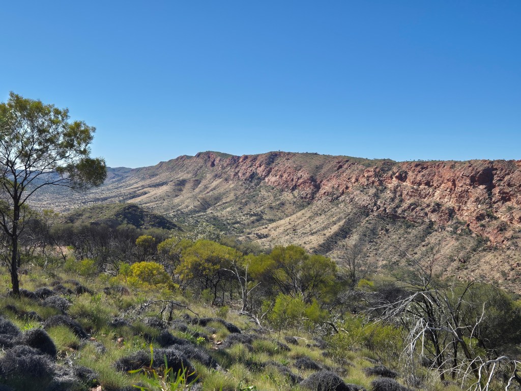 Our targets for this stage of the trip are the Eastern MacDonnells and Kings Canyon which is within cooee of Uluru and Katajuta. The Heavitree range to the East of Alice Springs is quite different to the West. The geology seems unique and I am of the view that its really picturesque. Setting up camp is quick and easy and then the next day it’s a walk down into the valley.