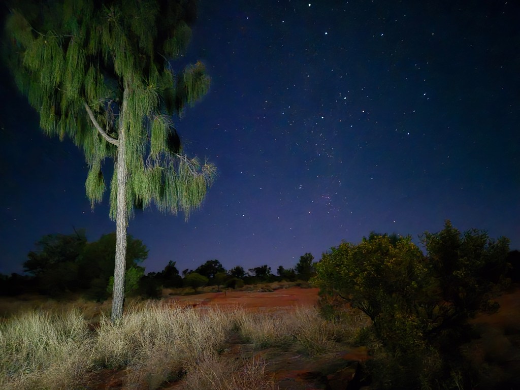 We reach Coober Pedy, the largest source of opals in the world well before dusk and head off the next day for The Alice. We will spend a couple of nights there to provision for our 9 days in a bush camp on the Western edge of the MacDonnell ranges. As expected, we were assaulted with below zero nights, but at least the days warmed nicely after the initial chill. Just to get the walking legs into gear we nipped out to Simpsons Gap to walk the Woodland Trail.
