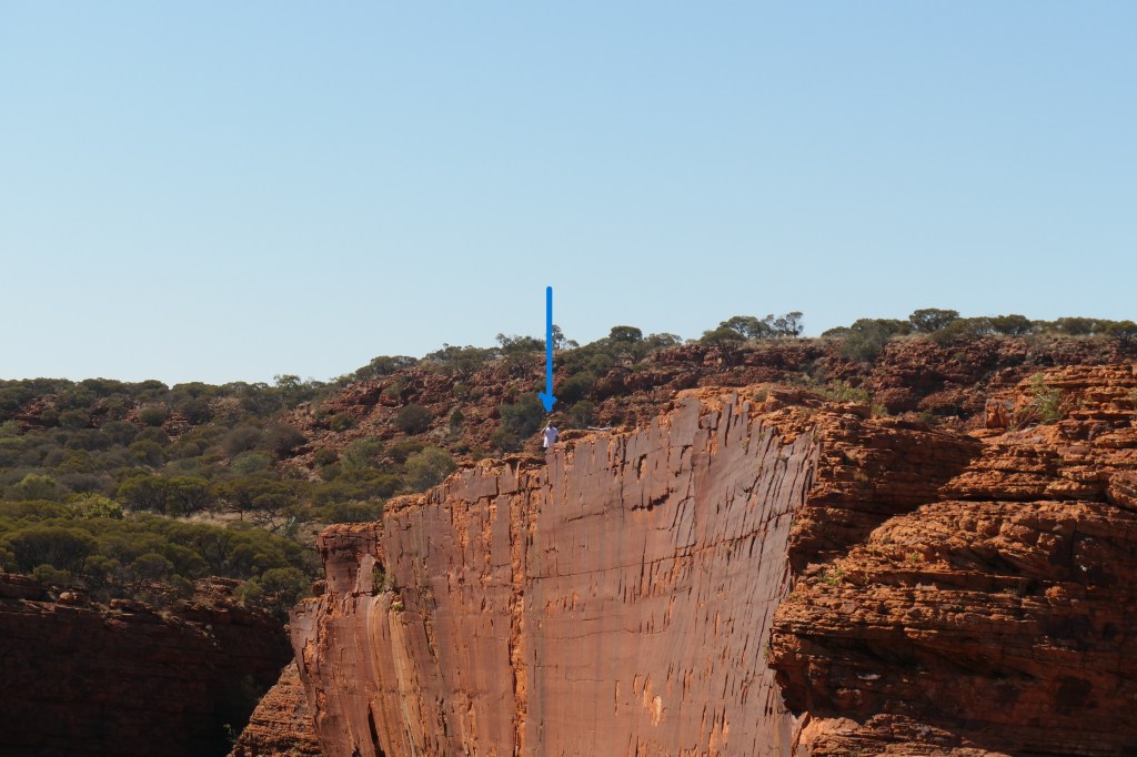 Now as you can see below the views are pretty good and to get it into perspective I took a picture of a person at the top of the cliff…yes that blue dot on the picture below this one. Personally I would not be standing that close…but there you are.