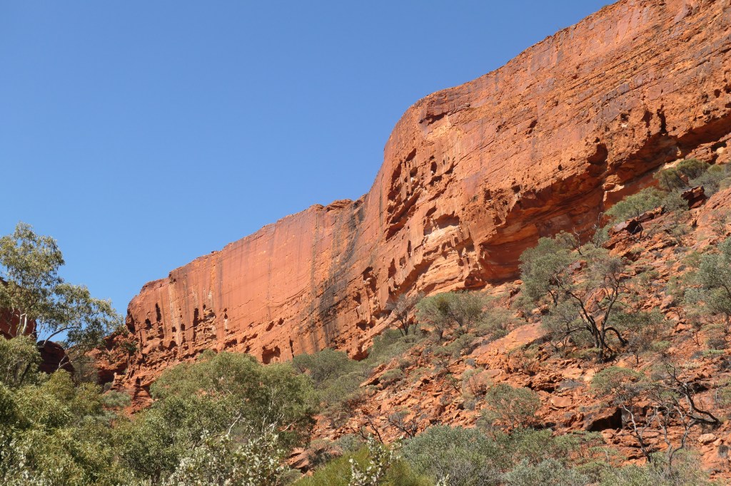 Walking down the canyon base tends to put the canyon into perspective. Its just awesome. I must confess here that I do think Uluru and Katajuta are beautiful, but inevitably prompt people to visit the mighty Kings Canyon.