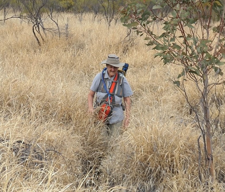 Reaching the trail head it’s time for nibbles and then to find a route across the river to enable us to head back towards the Pacoota range and our vehicle. As you can see spinifex abounds and one needs to be careful to stay well clear of the razor-sharp barbs.