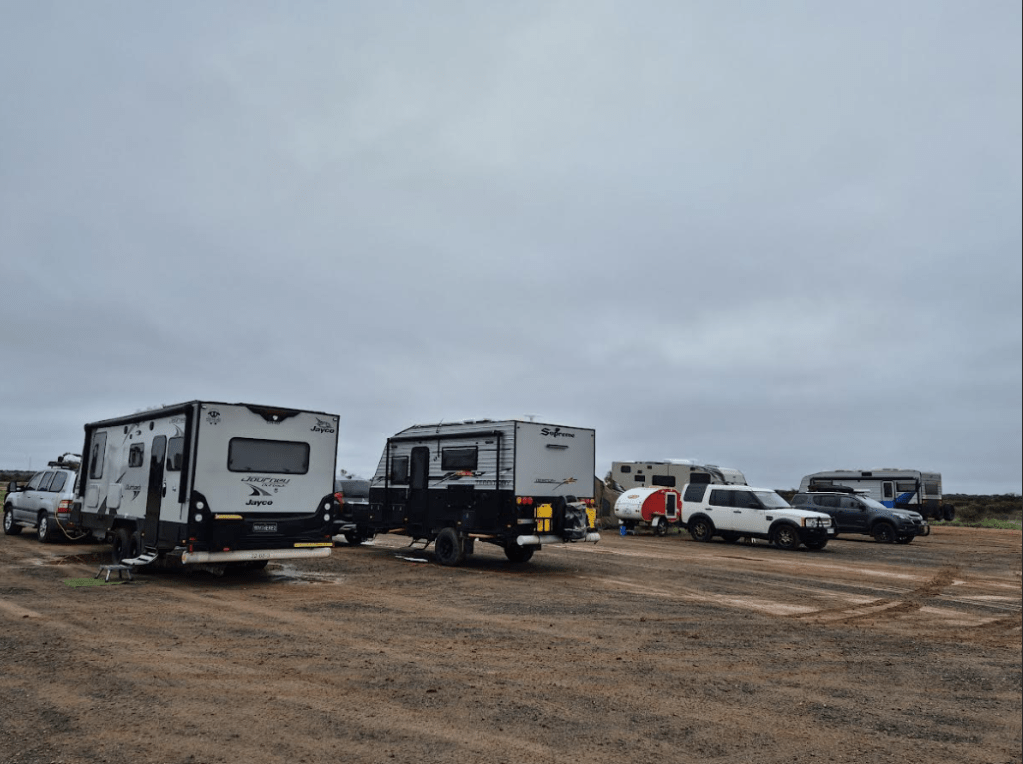 Wild and woolly weather is approaching from the West (thanks Perth). Settling in at Cocklebiddy campground we are dwarfed by monster vans and deluged by rain. Yes, I am the titchy red “thing” nestled uncomfortably between a few of the many surrounding us. I any event we plan to stay here for a couple of nights to explore the famous Cocklebiddy caves close by.