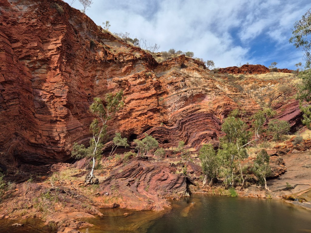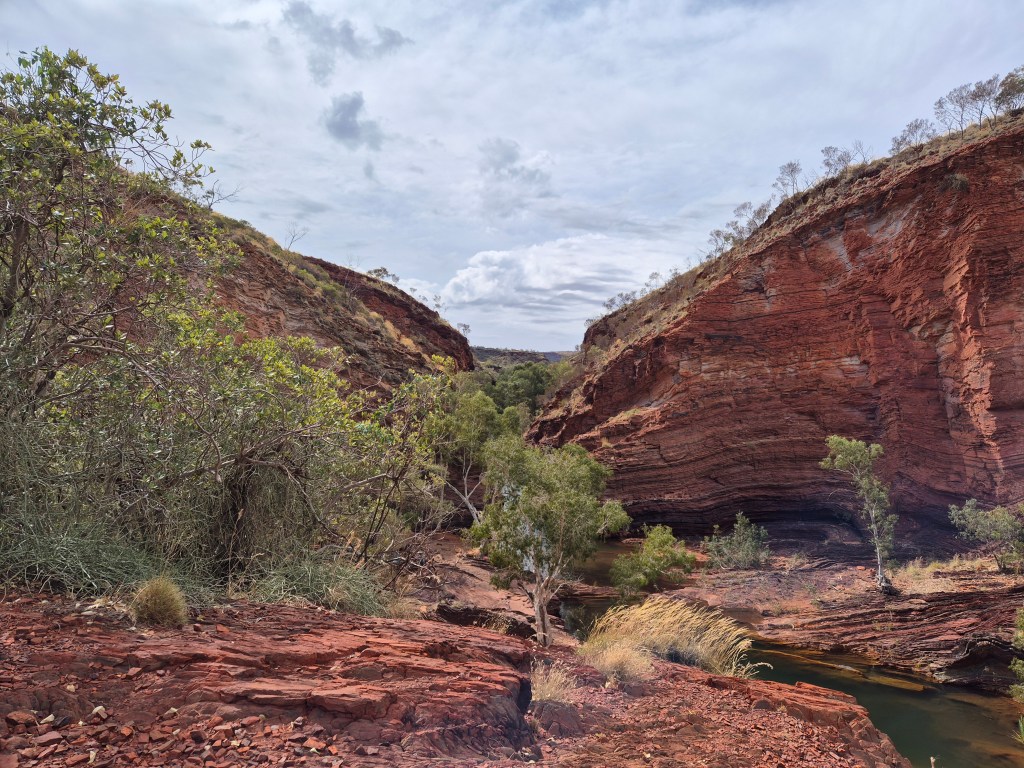 Moving onto another busy day we set our sight on Knox Gorge at its intersection with Wittenoom Gorge. This a very impressive junction but all I on can do at this time is to provide a couple of pics showing one side and then the other. The high red cliffs are stunning.
