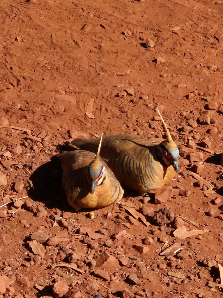Now Lizards reside throughout this country of ours, but I still find these wee brave souls interesting. Surprisingly we spotted these two Spinifex Pigeons this morning also and noticed a couple of things. Firstly, they are somewhat smaller than their cousins in the NT, and secondly, I have seldom seen them in buddy mode…nice.