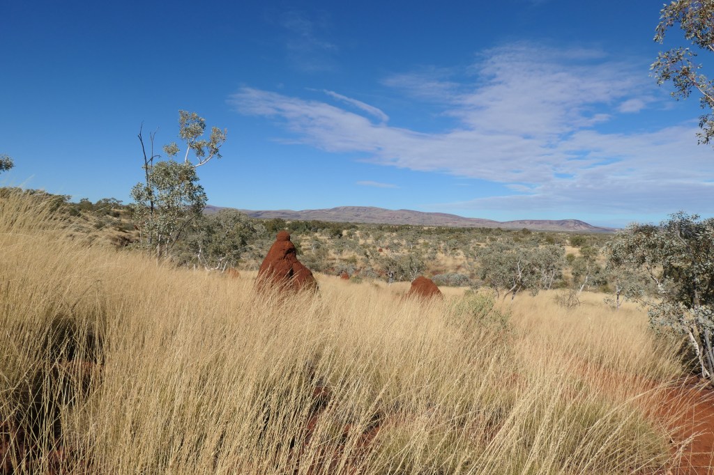 Today we headed into Tom Price and then onto the Hamersley Gorge. Eons ago, this was a rainforest. But the mid Australian ocean created this rocks distinctive Black Iron Formation which was made up of minerals originally deposited as fine mud billions of years ago. Regardless its quite rugged and beautiful and I confess I do like to see the huge ant mansions that dot the hills. The spinifex is flowering at the moment which is pretty also.