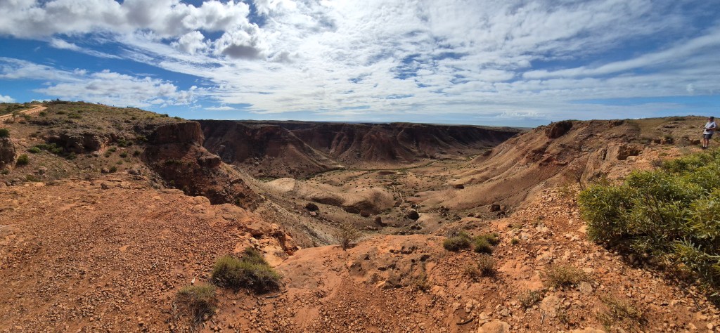With more time on our hands this afternoon, we are able to assess more fully the viability of the Great Central as a way home. It appears that there were big floods in that region in March and the road was significantly damaged, to be reopened recently. This does not bode well for a smooth transit, and we have therefore decided to head back home via the Nullarbor again. It would be a different matter if we had plenty of time, but we don’t. To add the storms that battered us today have headed inland and will also slow down transit on the Great Central. Now this is disappointing as I do like travelling this road. One has to be pragmatic though and just go with the conditions at the time. It’s a whole different matter if you are already out in the donga and the storm hits…then it can be a gruelling ride.