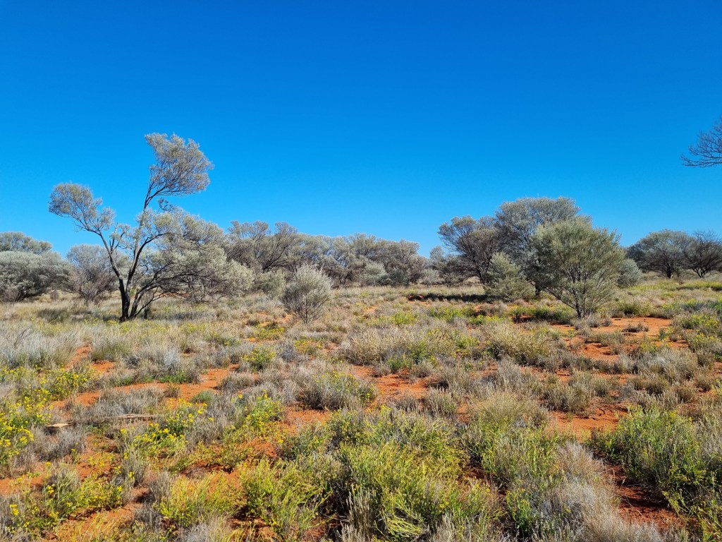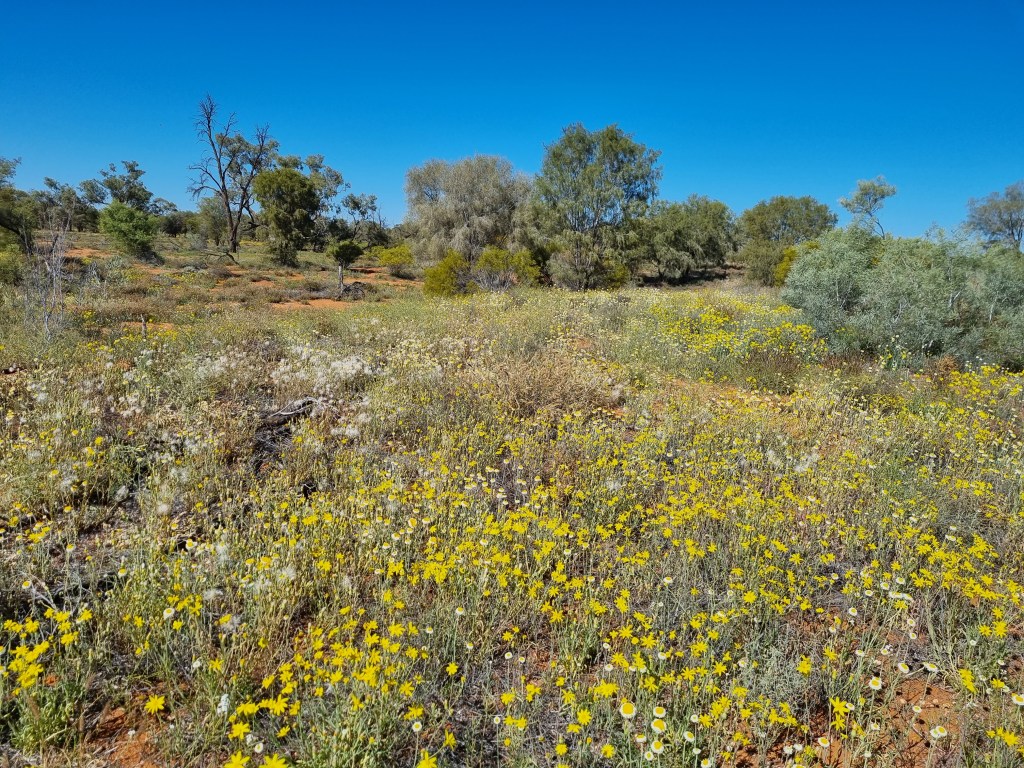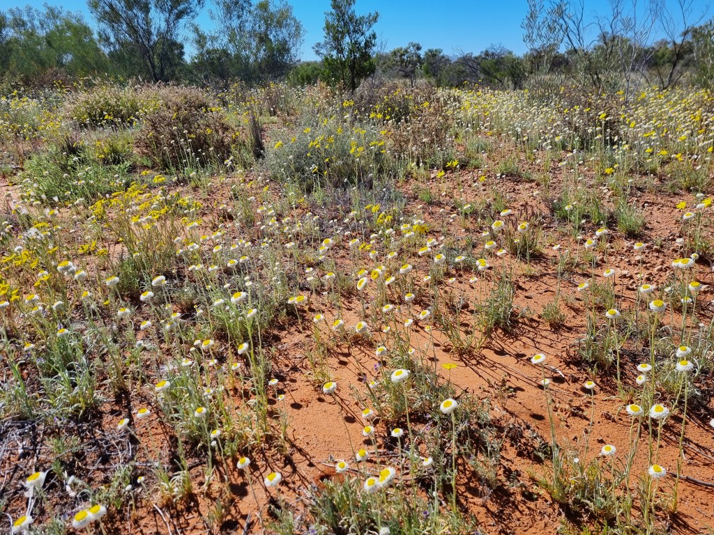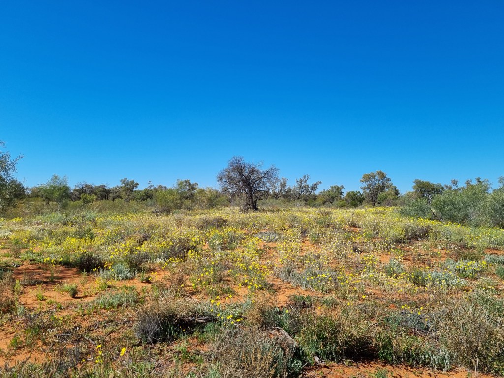Soon after reaching the Northern Territory border, we move into the typical territory look with rich red soils and Mulga trees. The recent rains have led to a flush of wildflowers which will certainly provide carpets of gold in August and September. This sneak preview is a treat.
