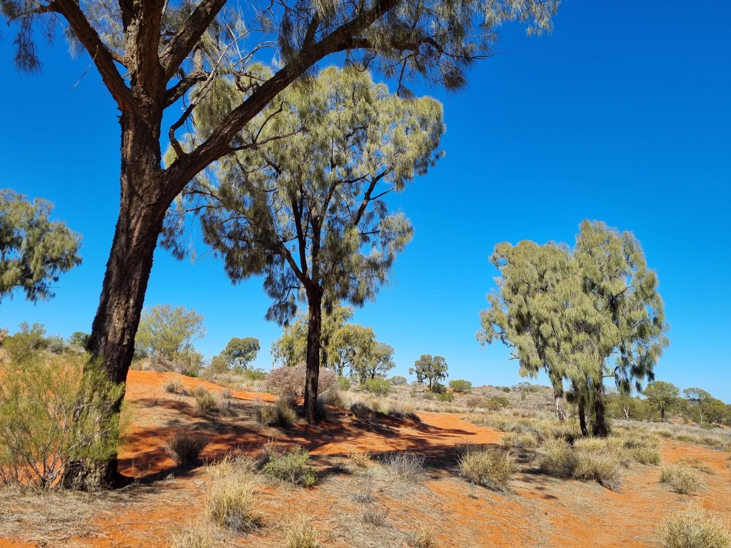 Further on we start to see Casuarinas (She Oaks) and red sand dunes. What a delight! Sadly we are not heading to Uluru this time around, but this is where these wonderful trees as well as Desert Poplars are in abundance. The drive to Uluru and Katajuta is therefore stunning.