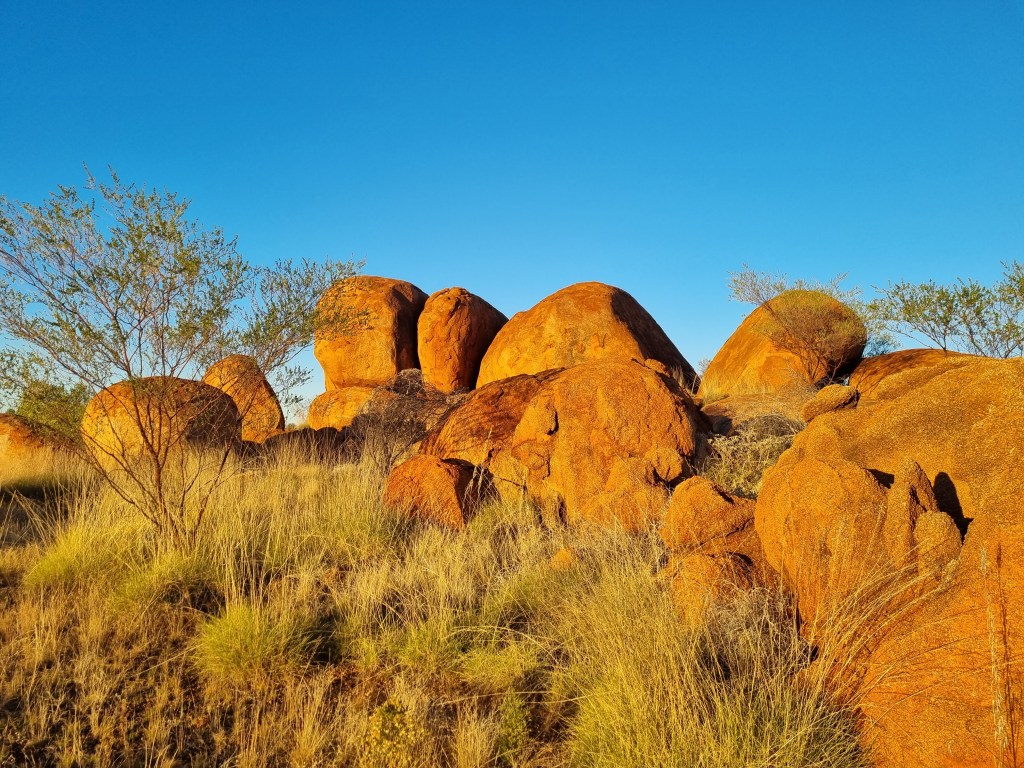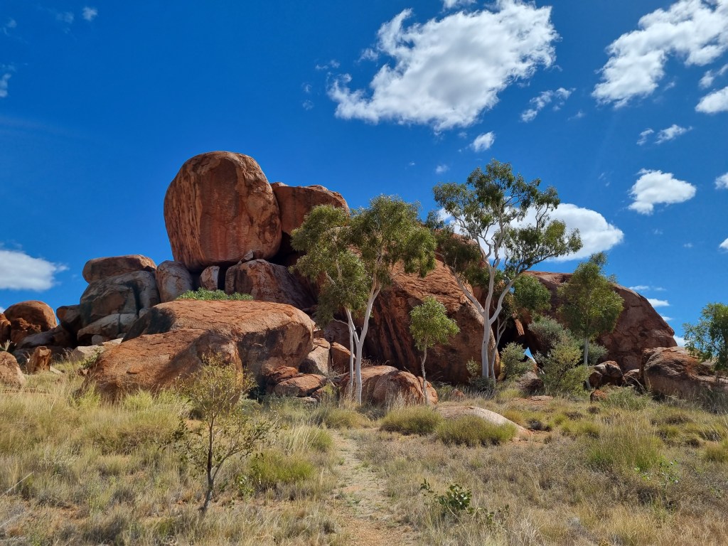 You can see we are back in the typically more arid NT zones now and as we head further south it will continue to be parched. The tropical North was beautiful, but we now enter more familiar zones for us. Once again, we pass by the Devils Marbles (Karlu Karlu) and take the time to drop in and have another look around.