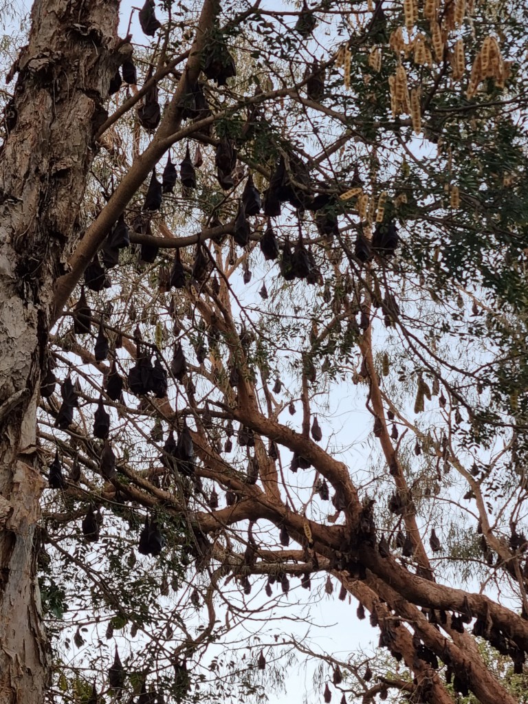 And so now we have left WA and are back in the NT at Katherine Gorge. It’s 35degs and about one million percent humidity. We popped in to get some decent coffee (being deprived for days) and to my absolute horror the trees are covered in roosting Bats !!!! Oh noooooo.