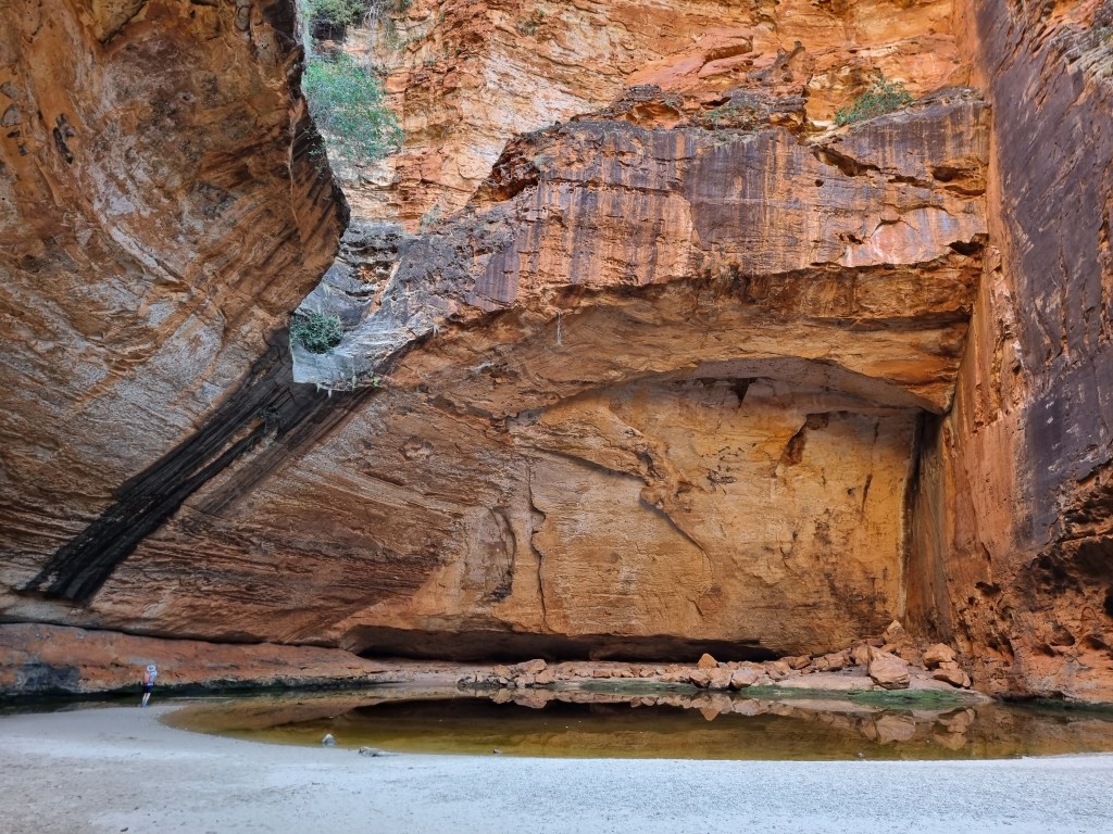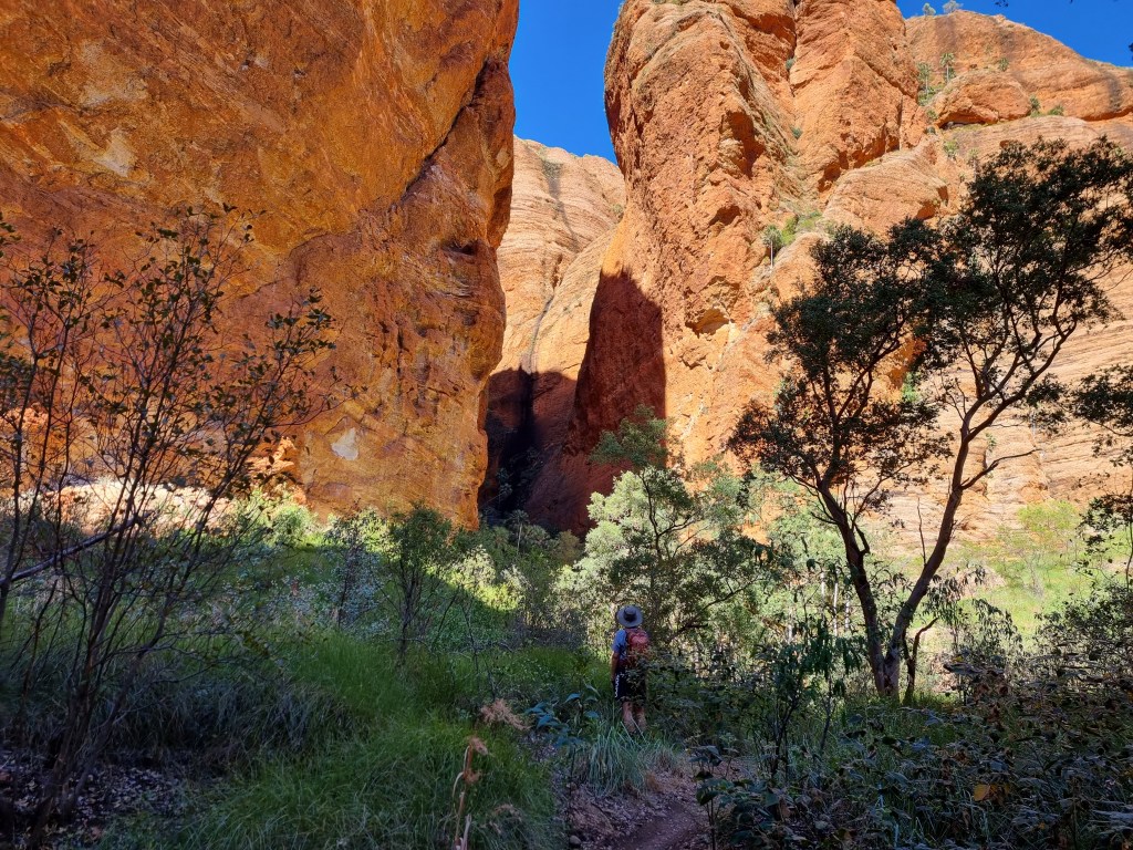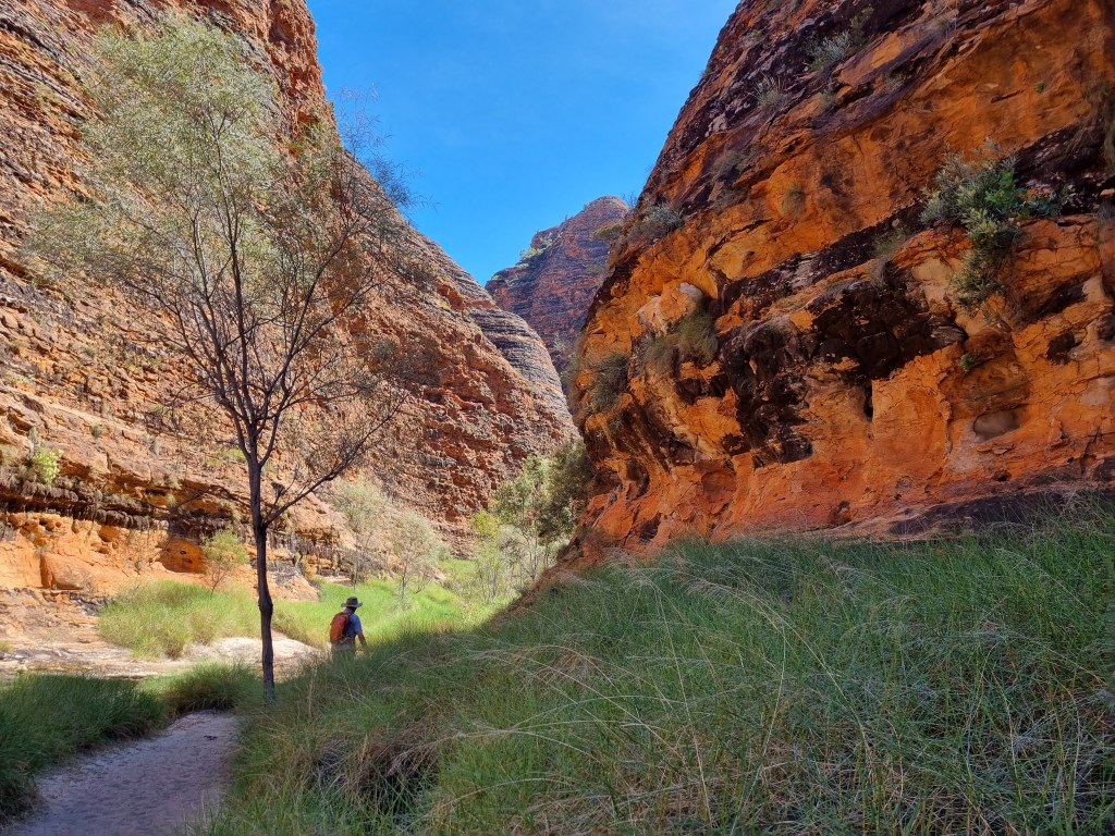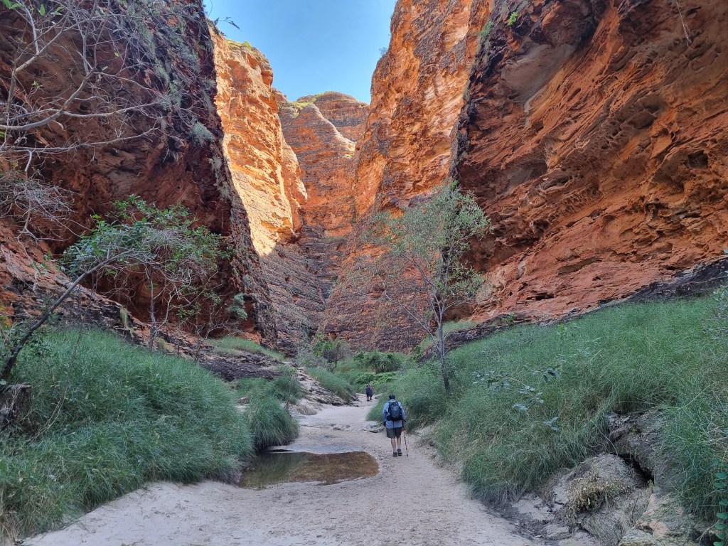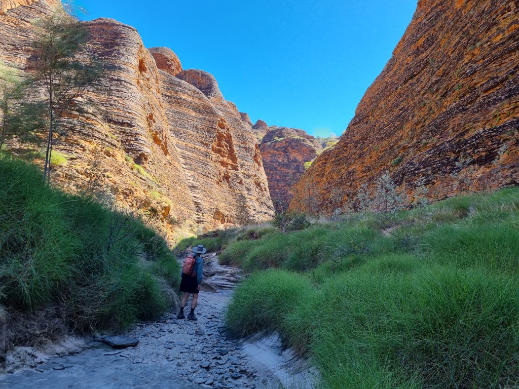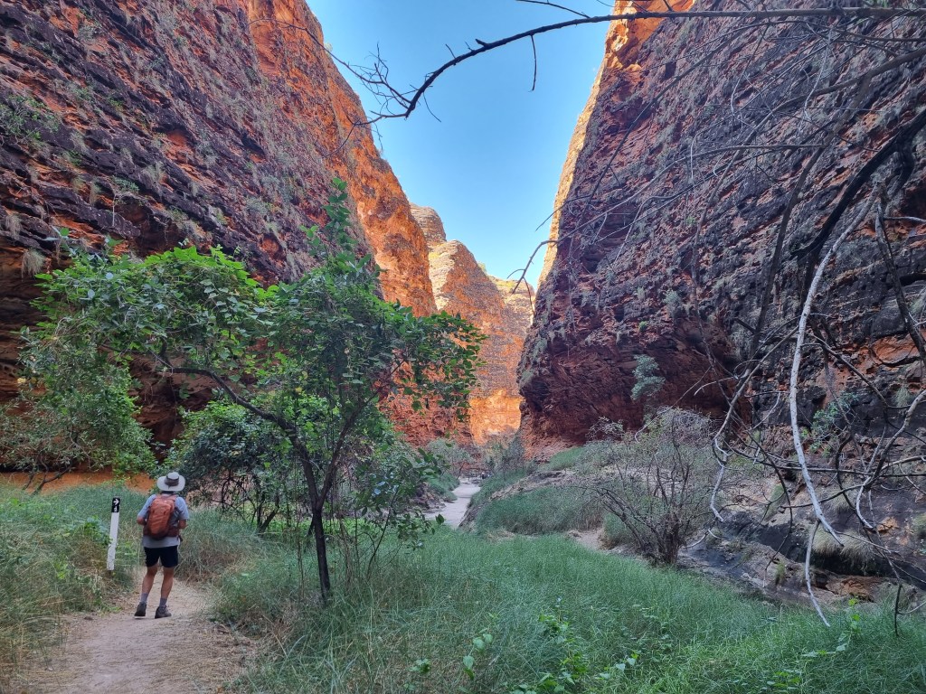 By no means is this a dawdle. The walk is graded at the highest level for Purnululu to encourage only those willing to clamber up, down big boulders to make the effort. Regardless we have no choice as this is a hugely significant personal space for us.