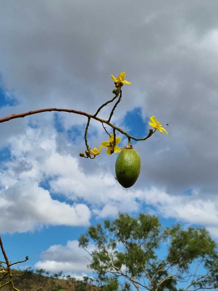 But it’s not just the ground flowers. As we also drove, we passed arcades of Senna (Cassia) and Wattle lush with bright yellow flowers. Even the Wild Tomato (the middle pic above) is to be found in abundance. I see these regularly out bush but have never ever seen such an abundance of so many healthy specimens. By the way these plants are called deadly nightshade by bushies….be assured I have never been tempted to eat the fruit.
