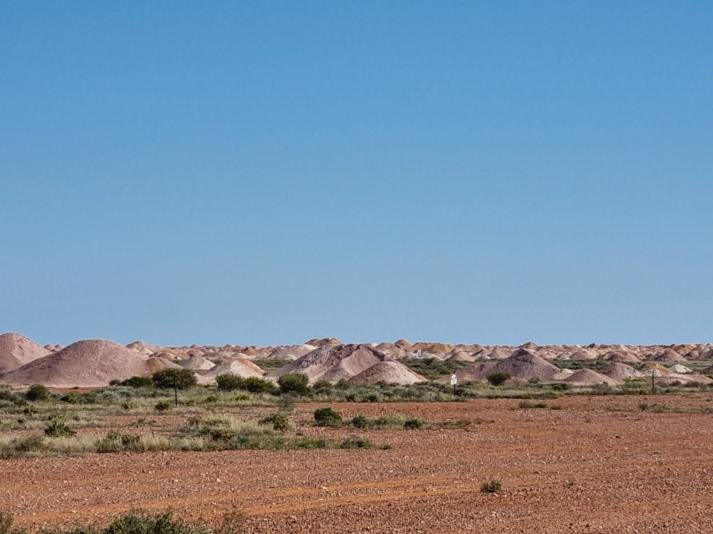 Week 1. The next day is decidedly sunny as we pass by Lake Hart a normally dry Salt Lake now filled with water. Indeed, there is evidence that significant quantities of rain have fallen in these normally arid areas recently. Then onto Coober Pedy a town famous not only for its opals, but for the number of their residents who live underground to survive the extremes in summer. This remote location supplies 95% of the world’s opals and has many square kilometres of the pits similar to those shown below from which they are obtained.