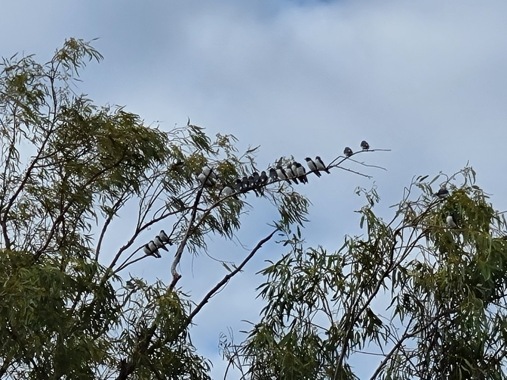 Cockatiels are sadly another bird that people like to keep in captivity. Out here they are a delight to see as part of their natural habitat. These parrots are light grey with a yellow crest and a red patch on the cheek. They fly in small groups of about 10-15 and are captivating to see as they wheel around at breakneck speeds. Of course, both of these are my Birds of the Day. The Cockatiels I expected but the Budgies were a gift on this occasion as we don’t often see them in such numbers here. The wet year will have made all the difference.