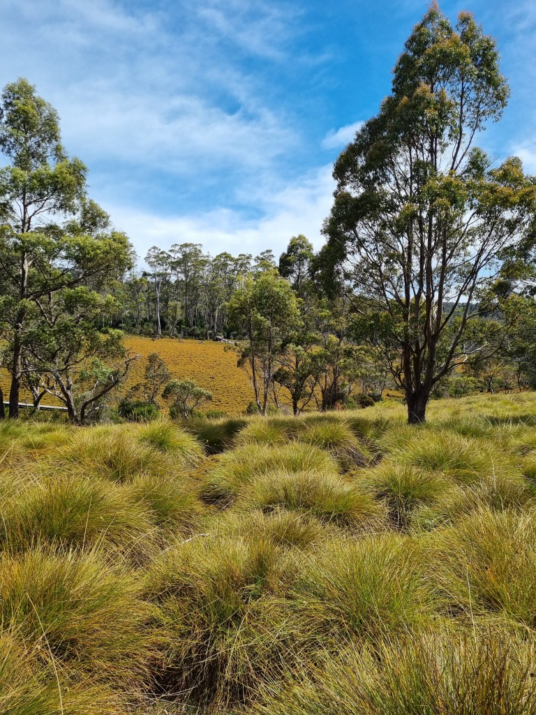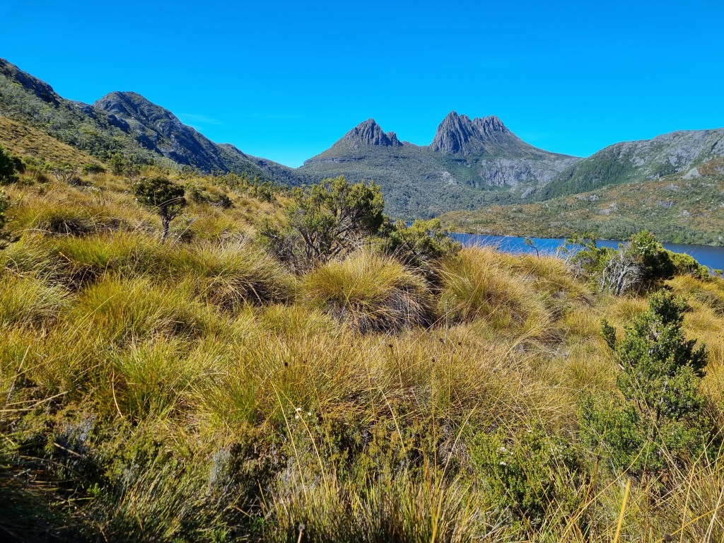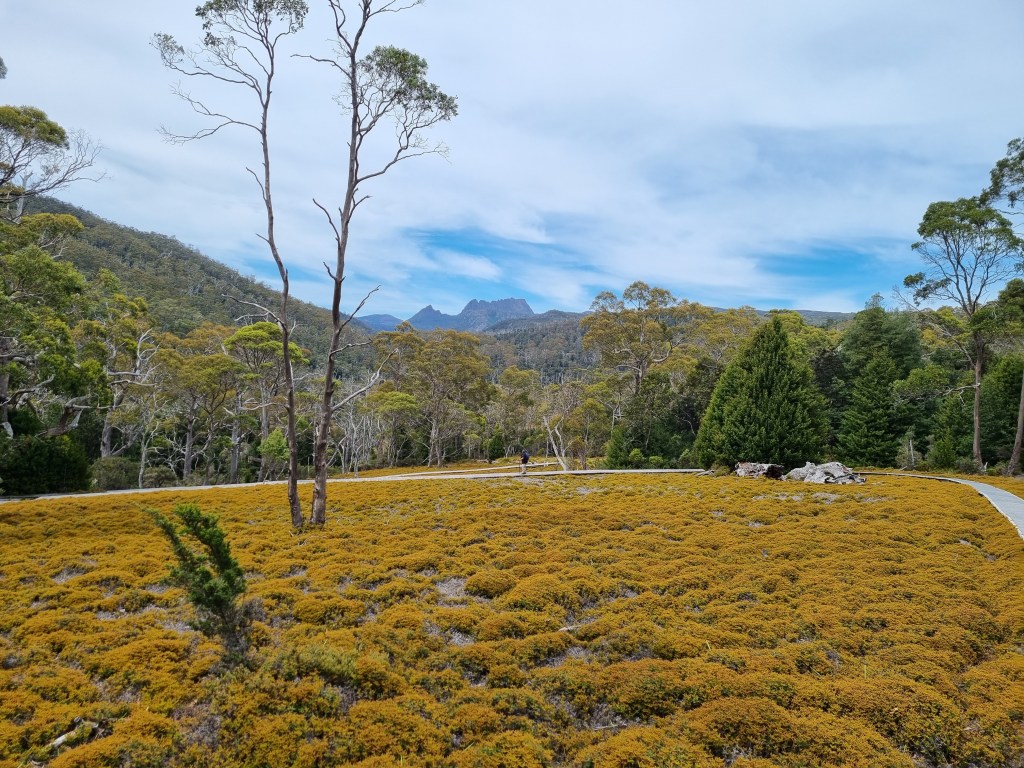 As a new day approaches we are delighted to be greeted with muted sunshine again and feel ever so grateful for that gift. Nasty weather is enroute and we would rather deal with it in a day or two. In truth Cradle Mountain is an absolute highlight and I am pleased to see that my sister is as gobsmacked with its beauty as I always am. So I will pop a few pictures here to give you a chance to see this magestic place. One where I personally think the mountains take second place to the amazing greenscapes, the button grasses, ferns, bushes and trees….I wonder if its politically incorrect to voice that preference?