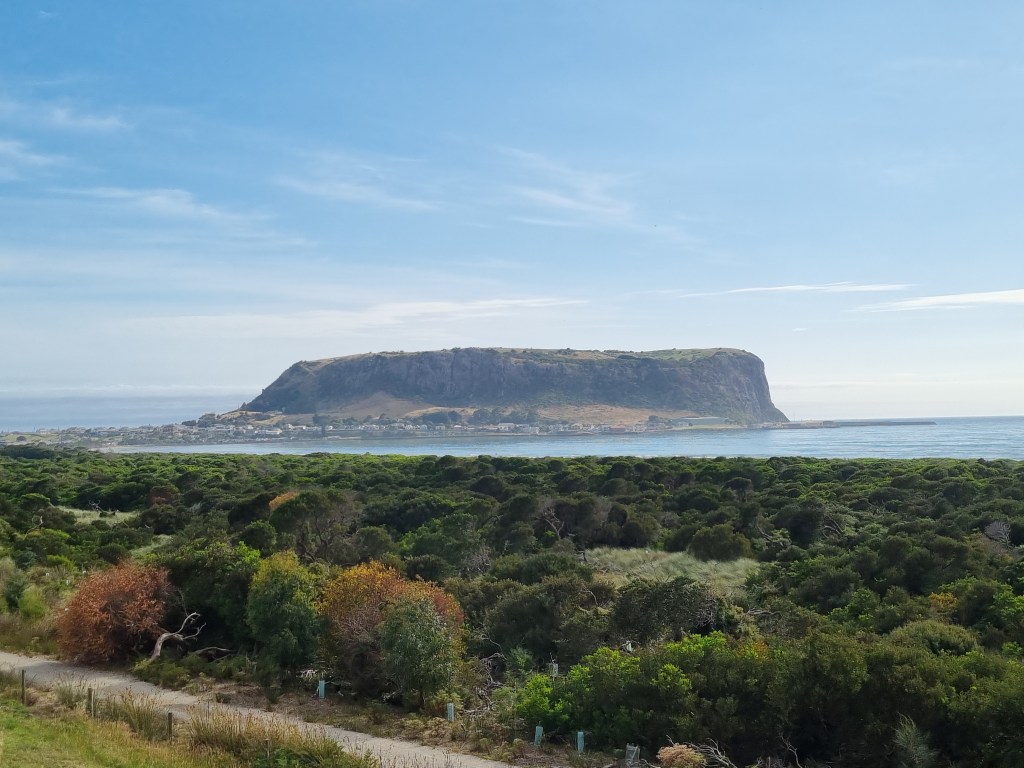 Driving North from Cradle Mountain we drove to the Smithton pub . Funnily enough we imagined this to be a small town hotel, but were pleasantly surprised to find a big township with a hospital, huge lumber yards and even a Mitre 10. That says it all! Then onto Stanley to see an interesting formation called The Nut, which is famous for its history and Mutton bird burrows. The township itself, like so many in Tasmania oozes that history.