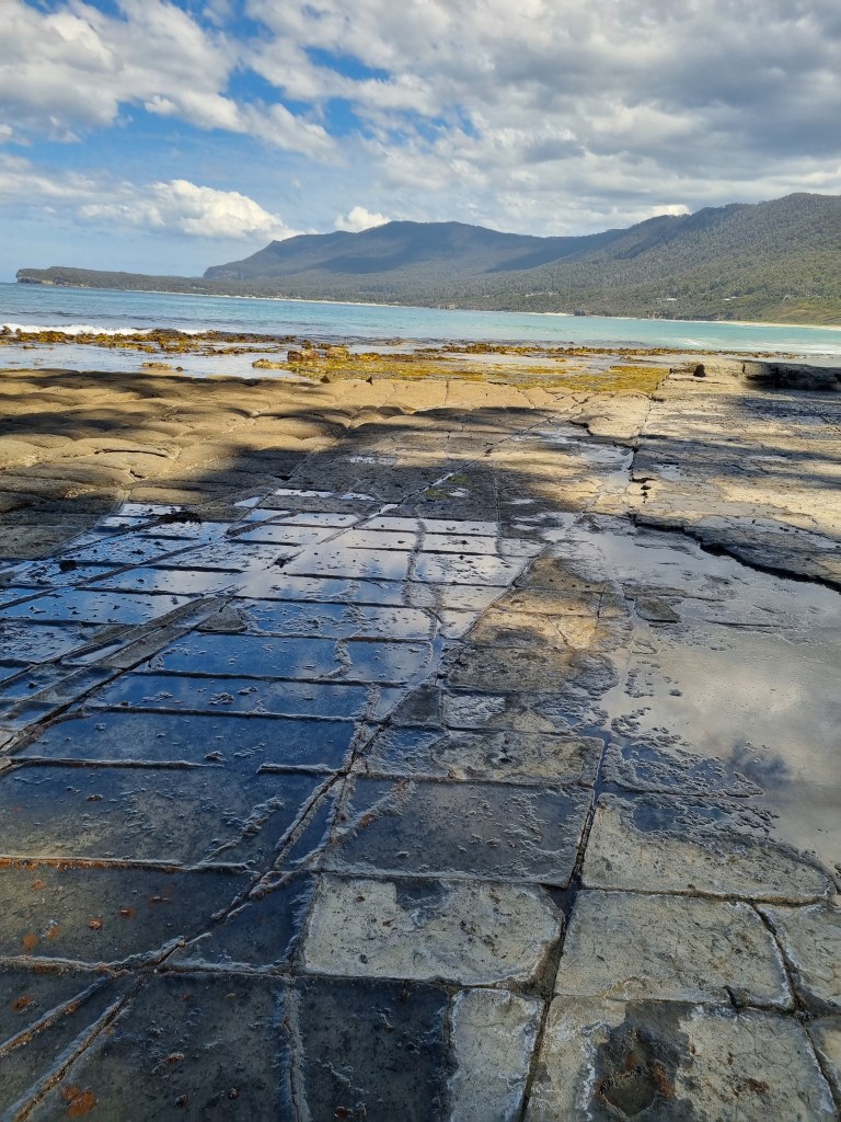 Driving a little further along we were intrigued by the Tessellated Rocks which were formed over millions of years as a result of the action of salt crystals on compacted siltstone.