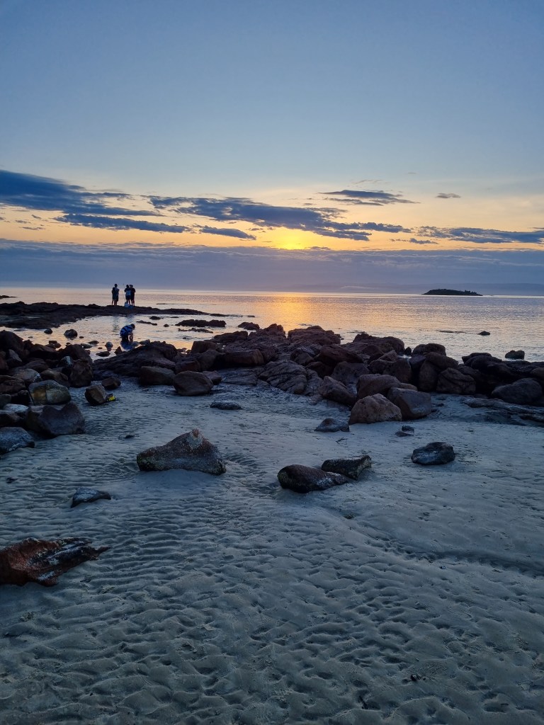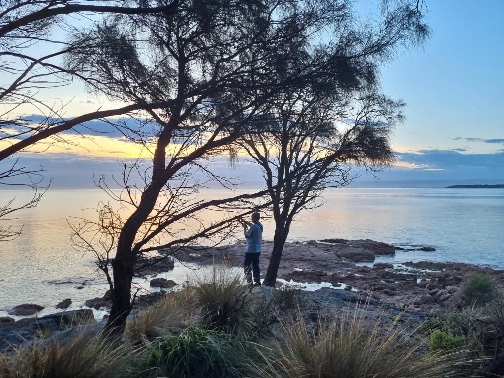 After a few days on the Tasman Peninsula we pack up our kit and head North to the Freycinet National Park. Its a rather hot day and after establishing our camp we nip down to the beach for the sunset strip…very pretty.