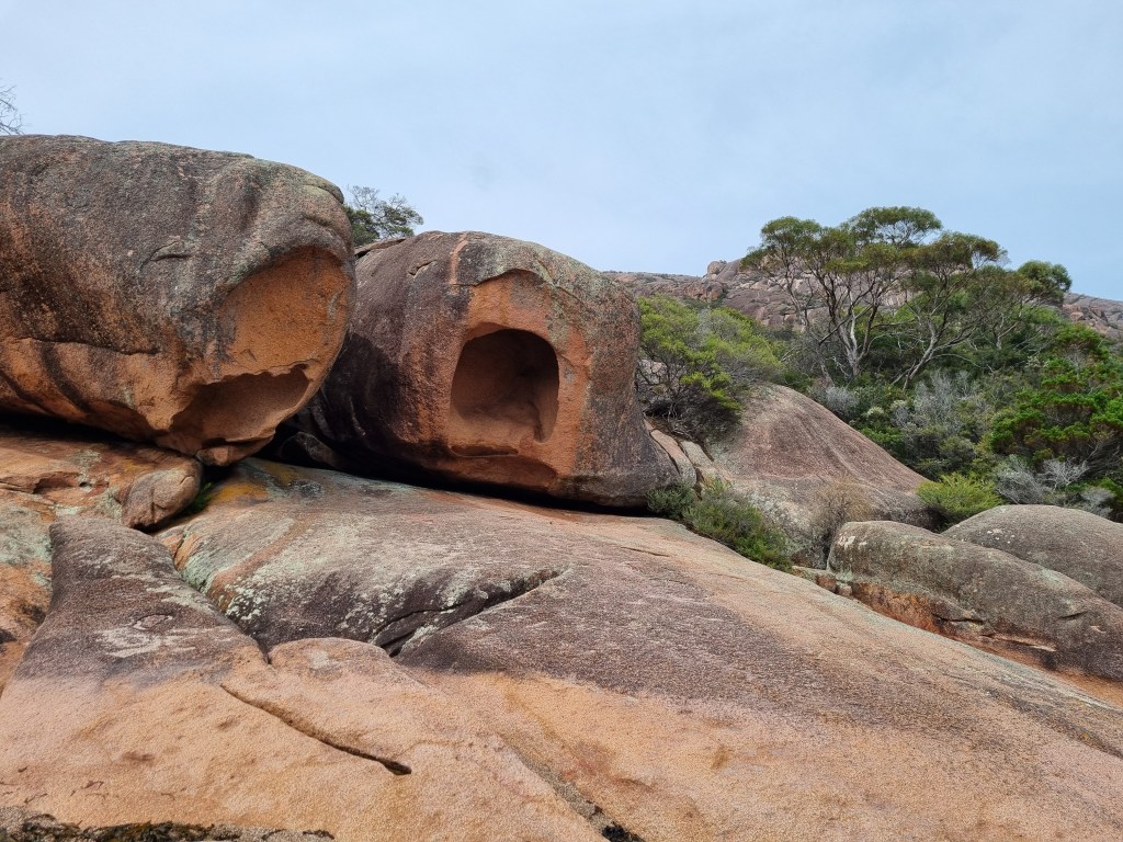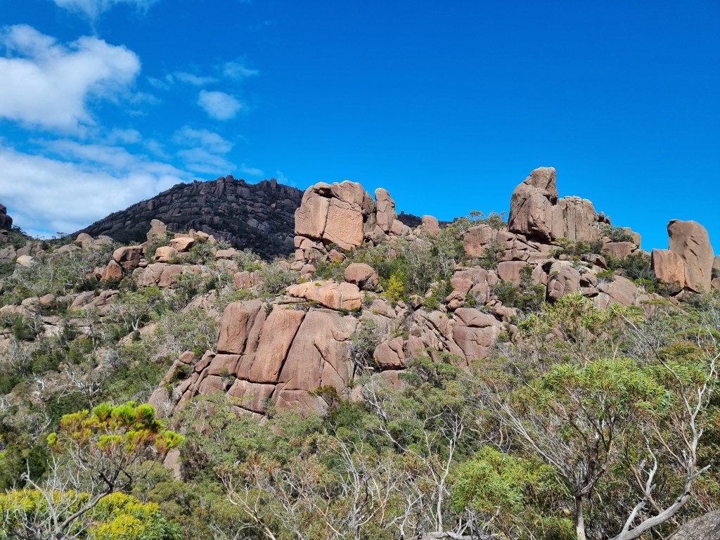 A chill night for a change and we are up bright and early to nip up to the Wineglass Bay lookout. Heading up one can’t help but admire The Hazards and in particular Mt Mayson. The rock formations are just beaut to see.