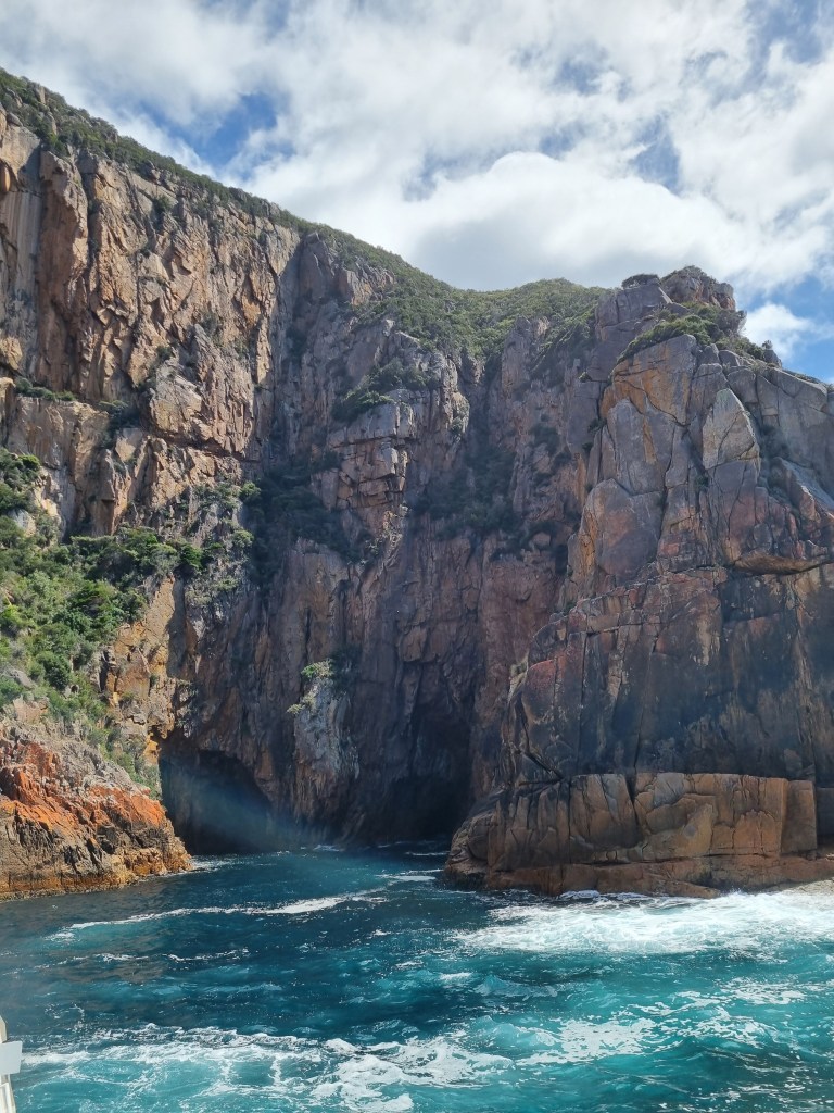 Happily the rain passed after a single day of gloom and we have been here for a few nights enjoying delightfully warmish days with some sunshine. The focus of our attention has been the opportunity to see Tasmania’s rugged coastlines where the Southern Ocean meets some of its dolerite cliffs. We have not been disappointed…albeit battered a little.