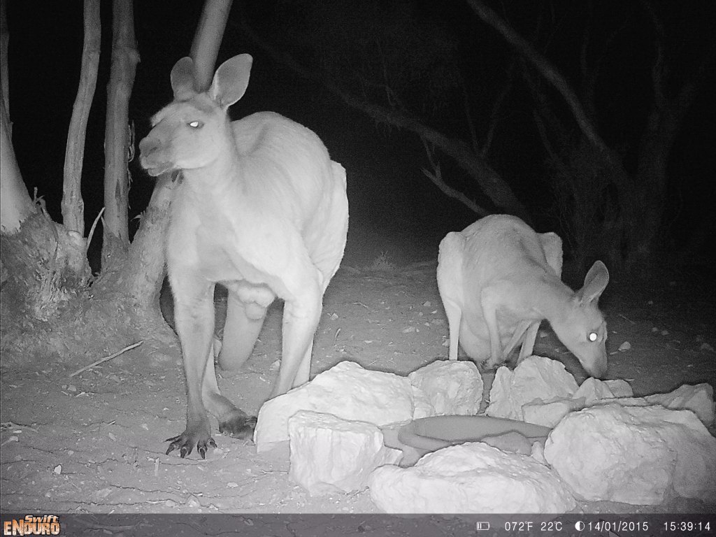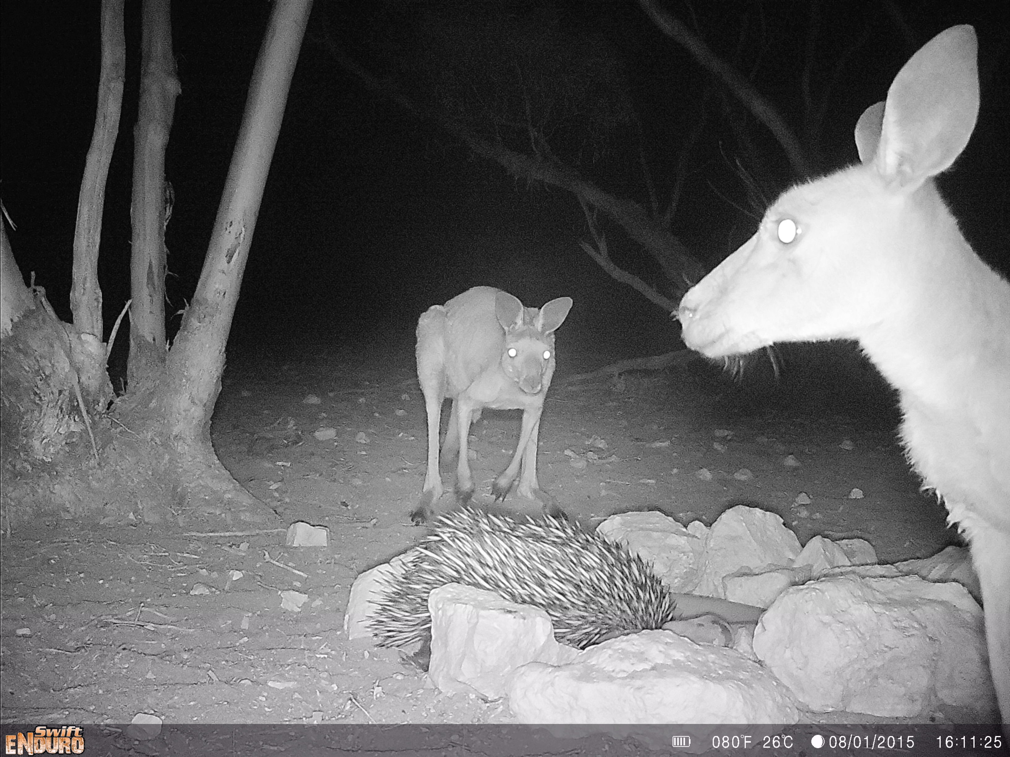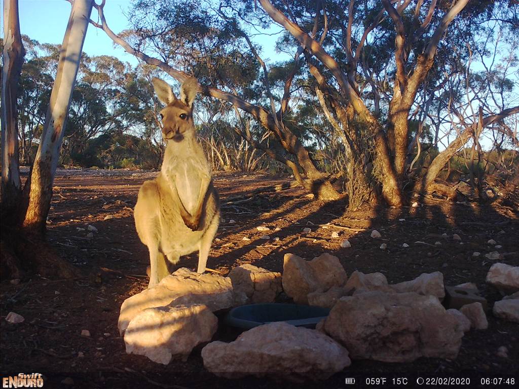 Kangaroos visit at all hours but sometimes find other creatures such as Echidnas in their water bowl. Patience….