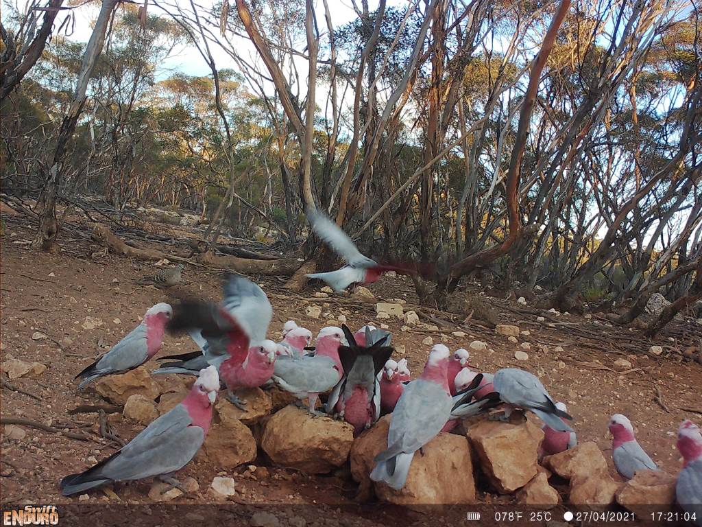 Bird life is extensive and includes masses of Ravens, Choughs, Magpies, Galahs, Doves, Parrots and many smaller Honey Eaters, Wrens, Pardalotes etc. The more recent regular addition of Goshawks has been most interesting.