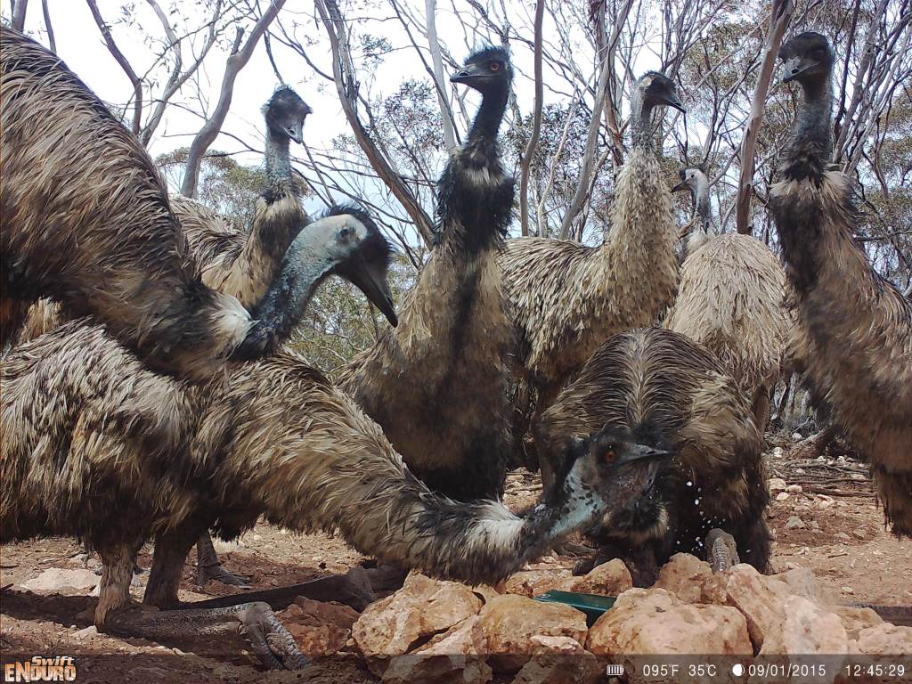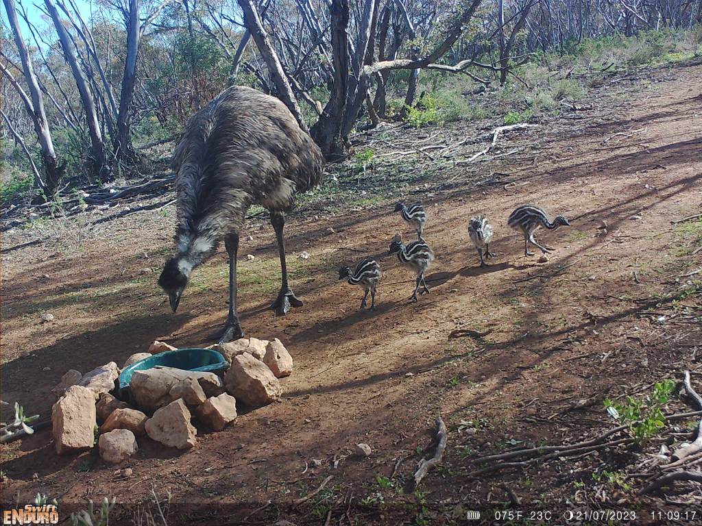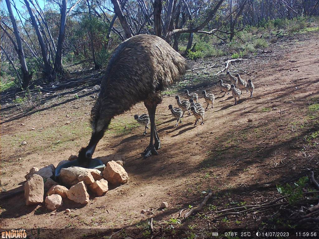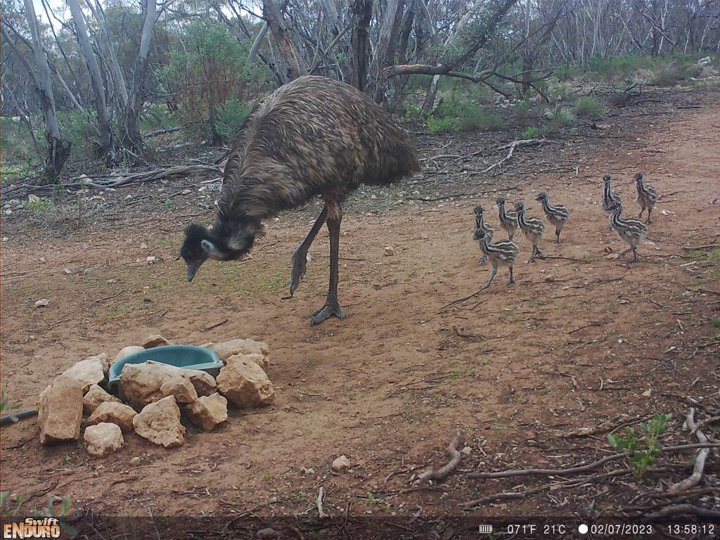 We provide water to our wildlife who visit those outlets at all hours of the day and night. Generally the birds have their way during the day and the animals and other creatures at night. Coming across a group of Emus requires some back peddling if there is a father who is caring for his chicks.